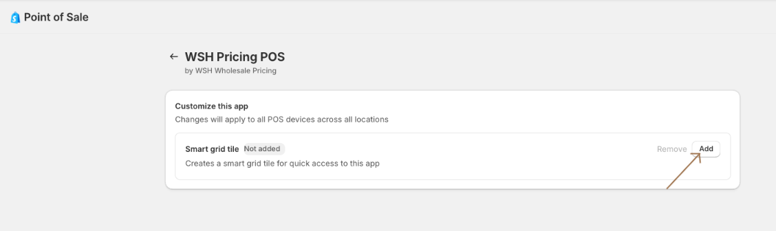 3. Under the Customize this app > Smart grid tile, click the Add button