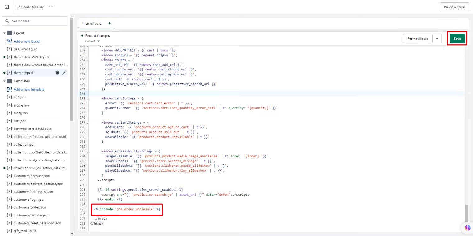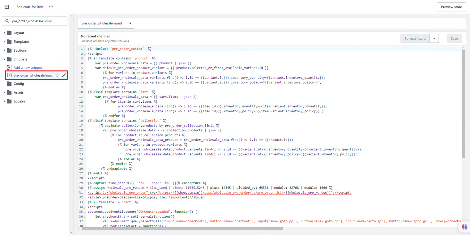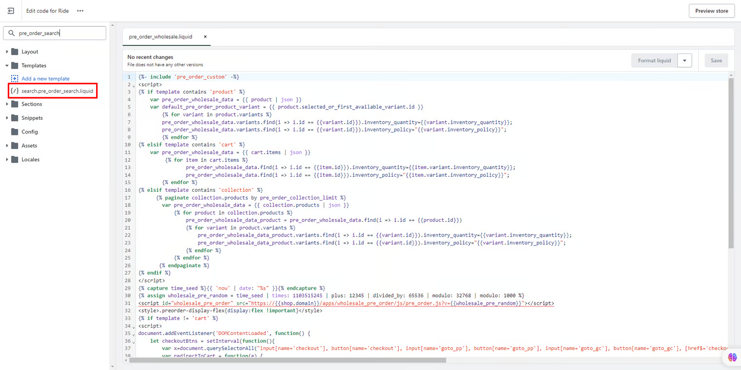 To remove the pre-order helper liquid code from your store's theme, follow the steps: