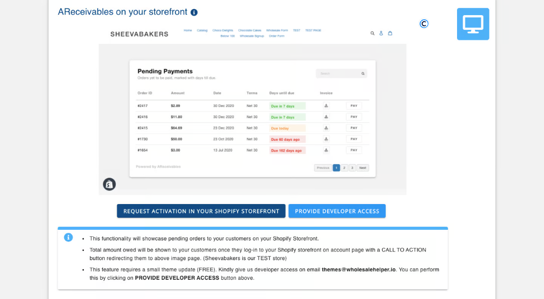 Yes, CUSTOMER STOREFRONT SCREEN will let your customers log in to your store, view their orders not yet paid (on net terms), download invoices, and pay them (with Stripe integration)
