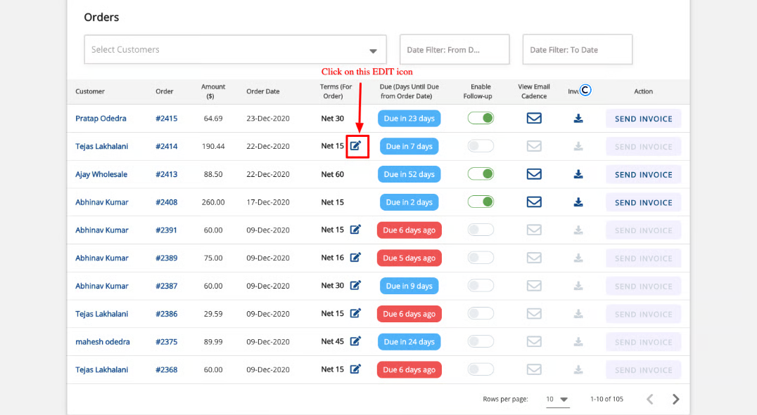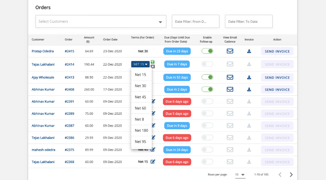 The order extracts payment terms from Notes. Yes, on updating the notes, the net terms can be updated until the order is marked for automatic follow-up in the application.