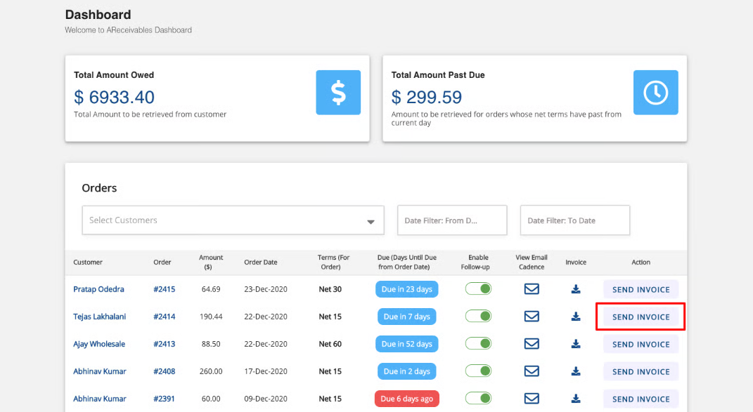 1. Click on SEND INVOICE