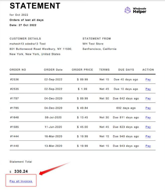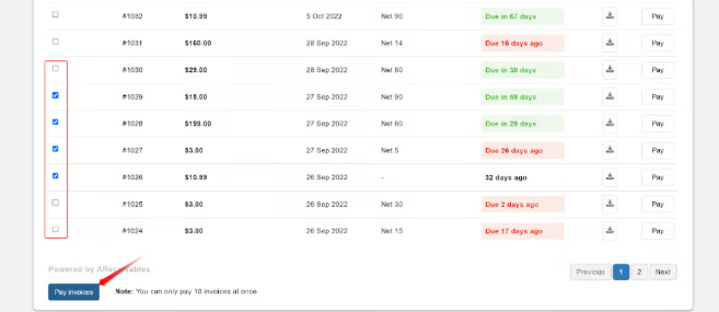 Yes, in the email invoices and customer accounts page, a customer can select 10 invoices to pay at 1 time with Stripe.