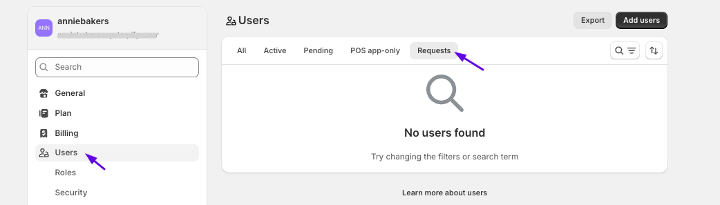 Go to Shopify Admin → Settings → Users