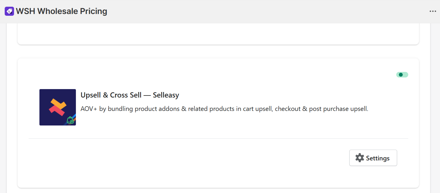 This guide walks you through integrating Wholesale Pricing Discount B2B (WPD) with Upsell & Cross Sell — Selleasy, so your wholesale customers can see their correct wholesale pricing on supported Selleasy widgets while you run upsells/cross-sells on your storefront.