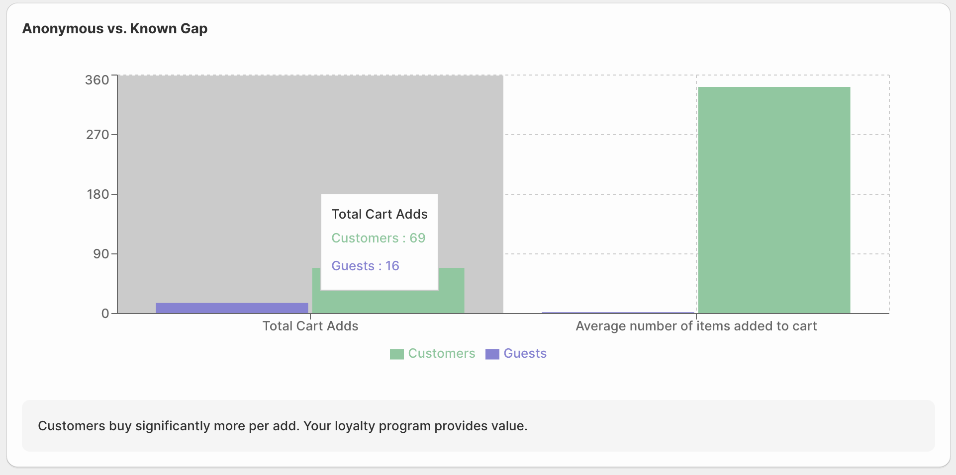 - If logged-in customers add significantly more items on average, this demonstrates the value of your loyalty or account programme.