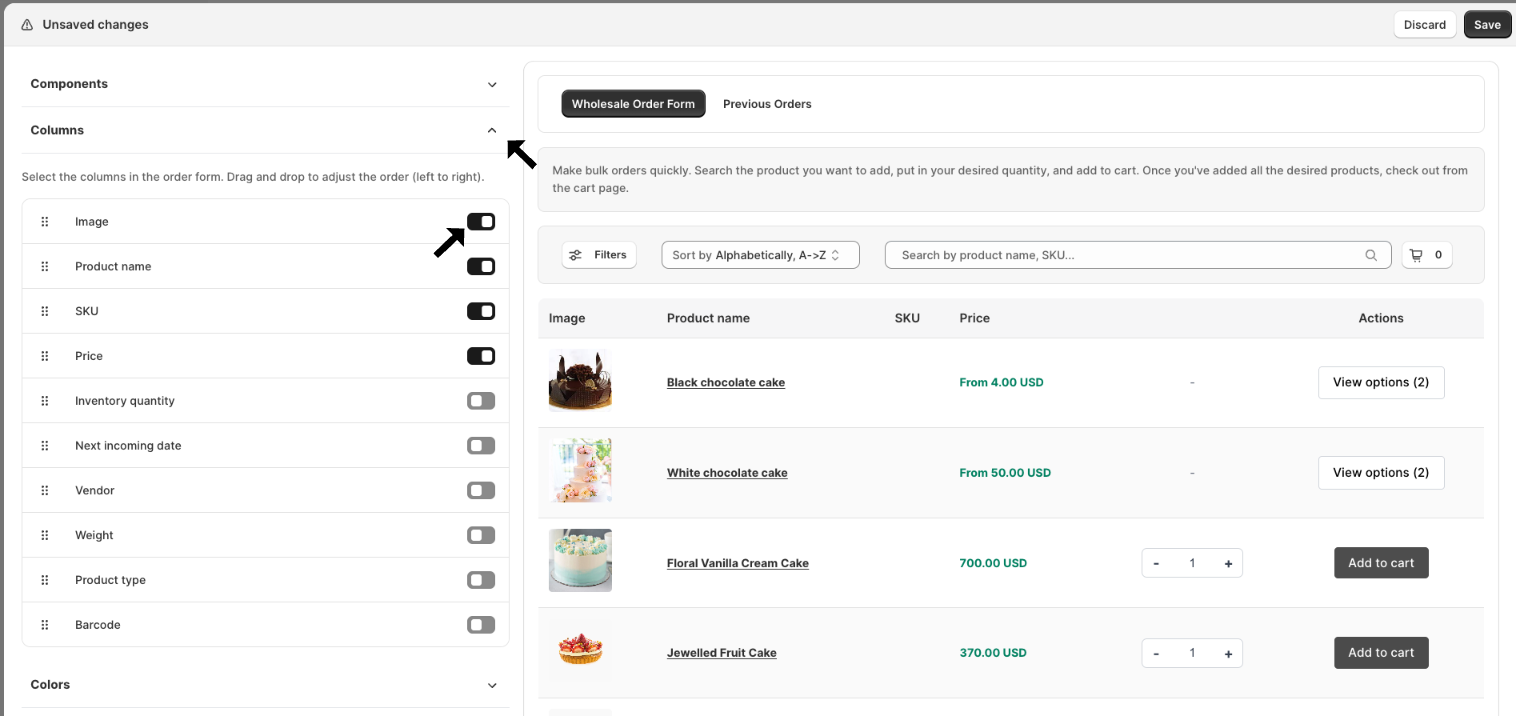 2. Now, go to the Columns menu on the left > and check/uncheck the button in front of Image.