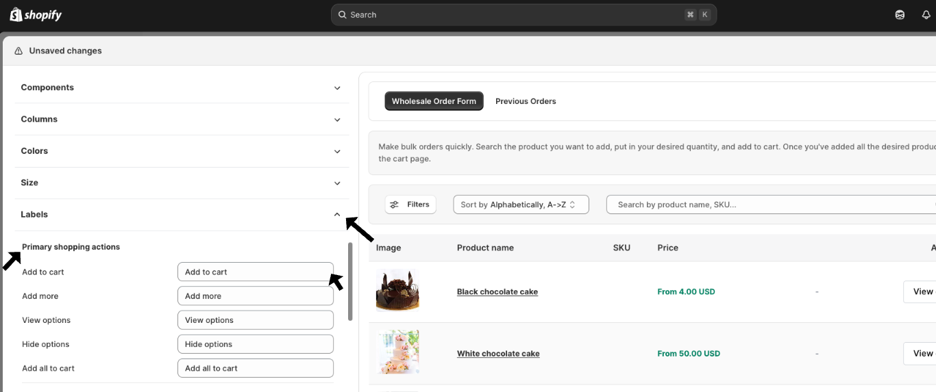 - Scroll to the Labels settings > Primary shopping actions